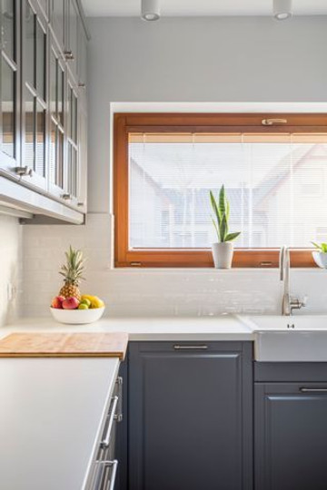 Vous pouvez également changer votre plan de travail si cela rentre dans votre budget ou choisir de le garder et l’harmoniser avec le reste.