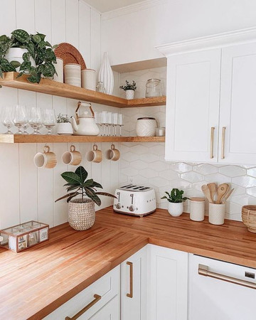 Si vous avez un comptoir qui ne vous plaît plus. Vous pouvez choisir de le repeindre ou de le redorer par exemple avec des tasseaux de bois. Je trouve que le rendu est très beau et change complètement le style d’une cuisine.