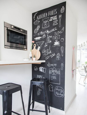 Ce qui peut également être sympa c’est de peintre une partie de mur avec une peinture ardoise. Cela va apporter de l’originalité à votre espace.